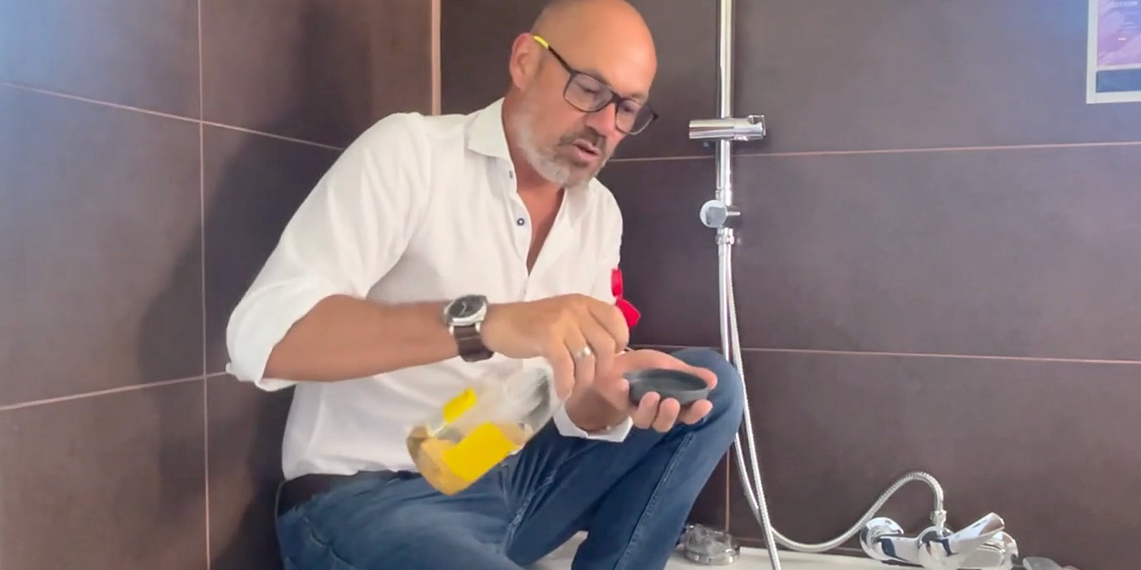6. Lassen Sie den Entkalker ein paar Stunden einwirken und drehen Sie den Kopf wieder auf den Griff.